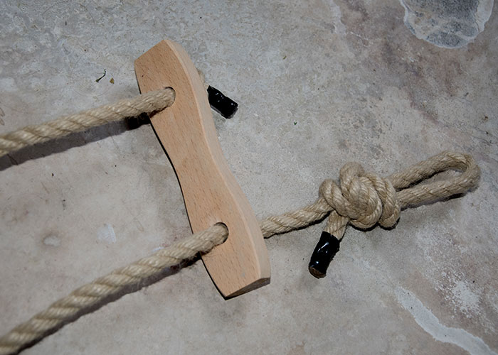 Our guy ropes are made of Hempex, strong, easy to handle with a natural look. They are 4m long, designed to go with a 2m long pole. The 6″ wooden slips provide a good grip on the rope meaning they don’t have to be adjusted regularly.
