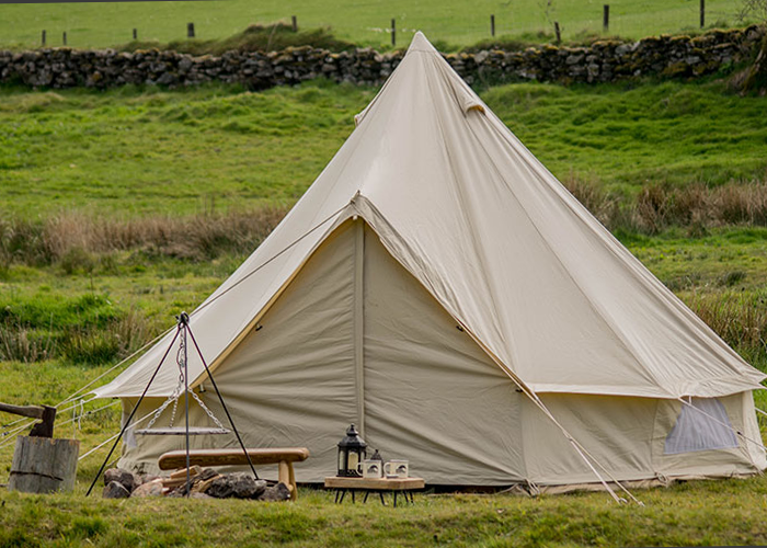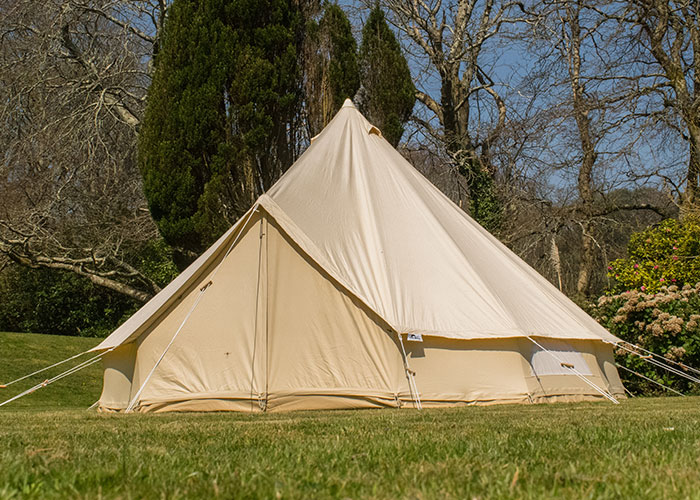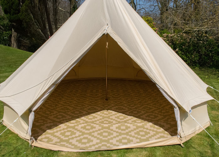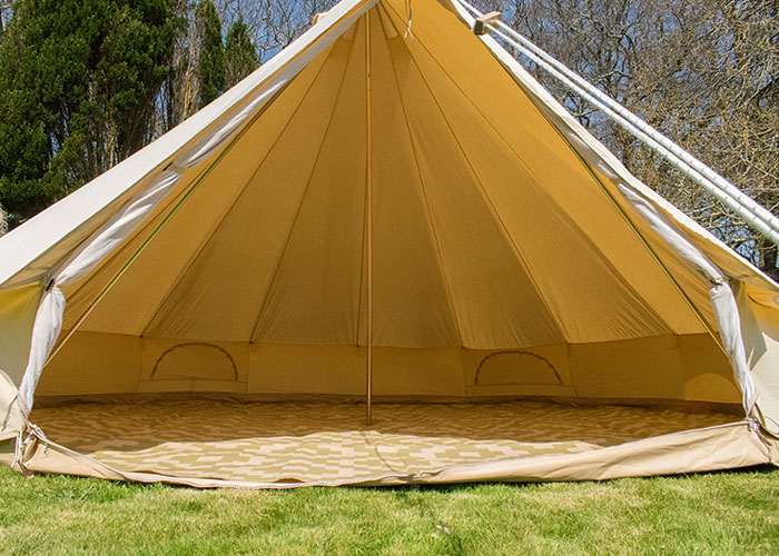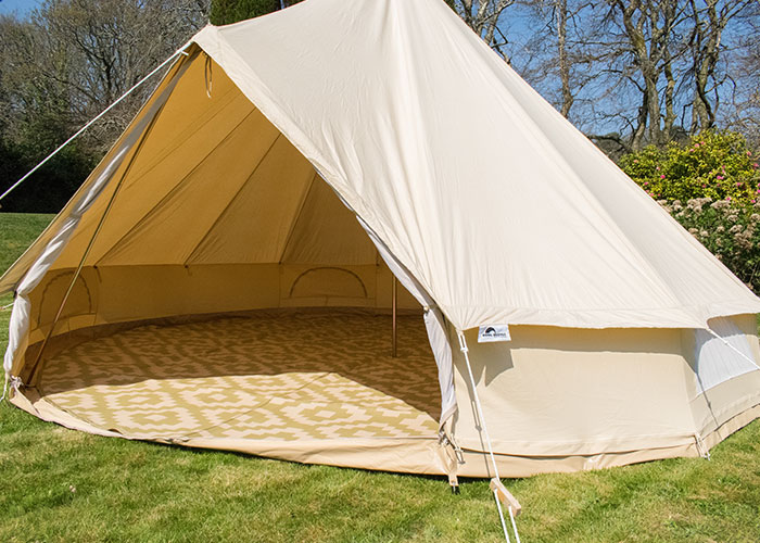 The 5m bell tent is ideal for big families or rental companies. It can comfortably sleep 8-10 on sleeping mats or 1 double airbed and 2 singles. Add one of our polypropylene bell tent mats and you have a cosy, stylish luxury pad. All you need to do is add lighting and cushions and you’ll never want to leave!
