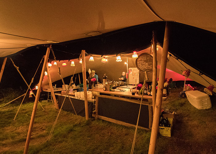 What makes the Stretch Tent unique is a combination of the stretch material and the way it is erected. Initially the tent is layed out and the corners pegged down. Then the poles are inserted from underneath pushing the fabric up. The poles can be placed anywhere and different lengths of poles can be used to achieve the desired space. This means the tent is very adaptable and the layout can be altered depending on the type of event and the weather conditions. If the weather is calm and sunny the sides can be placed on tall poles, if more shelter is needed the sides can be pegged right to the ground. If there is a tree right in the way of the entrance, the poles can be placed to one side.